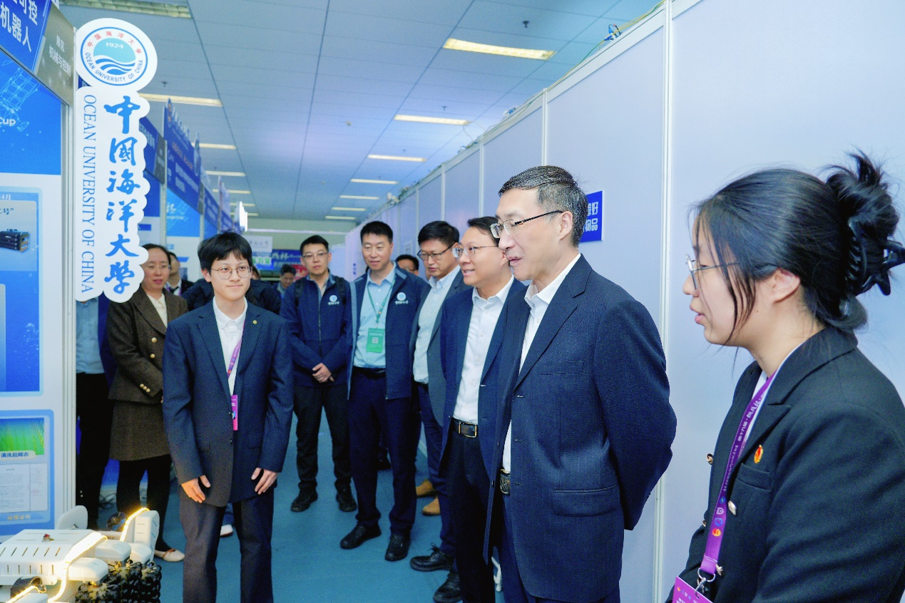 第十九届“挑战杯”中国移动全国大学生课外学术科技作品竞赛在南京大学落下帷幕,《深海粮仓守卫者——国产自主可控的光电结合式双机网箱清洗机器人》项目获主体赛特等奖。校长张峻峰出席国赛终审决赛,观看项目成果展并与参赛师生座谈交流。