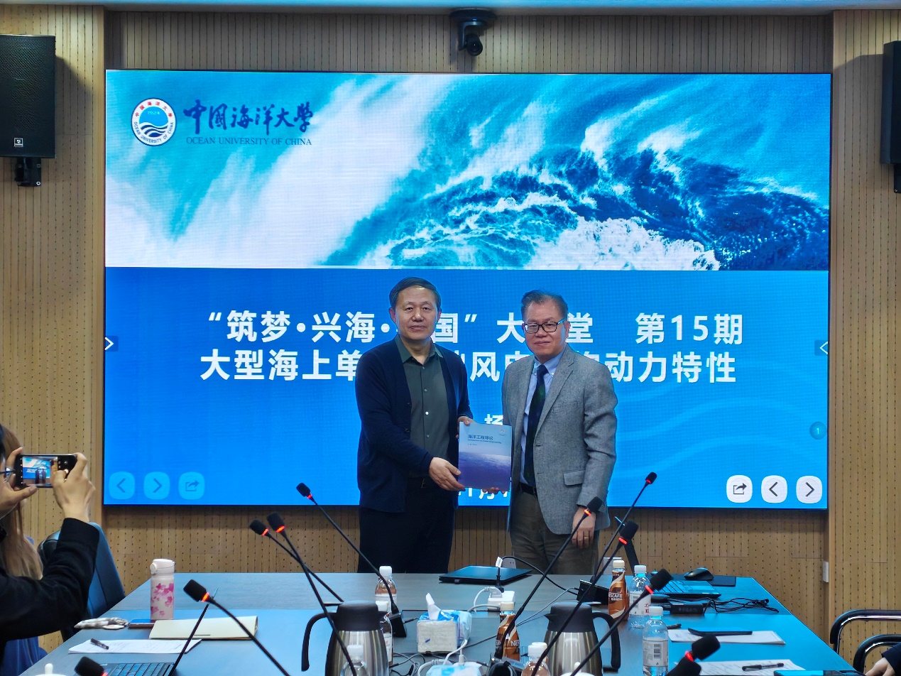 2026年1月15日,中国海洋大学工程学院第15期“筑梦·兴海·强国”大讲堂在崂山校区海洋工程楼518会议室成功举办。本期讲堂特邀香港大学杨峻教授担任主讲嘉宾,作题为“大型海上单桩基础风电结构动力特性”的学术报告。讲座由工程学院副院长刘福顺主持,李华军院士出席,学院数十名师生共同参加。